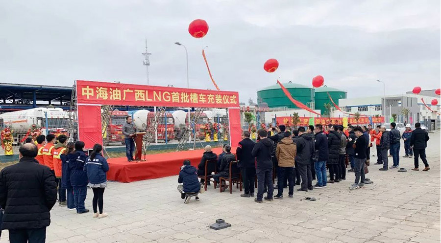 日前,中海油广西防城港LNG(液化天然气)接收站举行首批槽车充装仪式。这也标志着我国西南首座LNG接收站正式开业充装,将通过LNG槽车运往西南各省,为西南边远地区乃至全国各地提供充足的清洁能源。据悉,中集集团旗下集瑞联合重工有限公司(以下简称“联合卡车”)生产提供的多辆LNG槽车,作为首批充装槽车将承运该站LNG至目的地加气站。